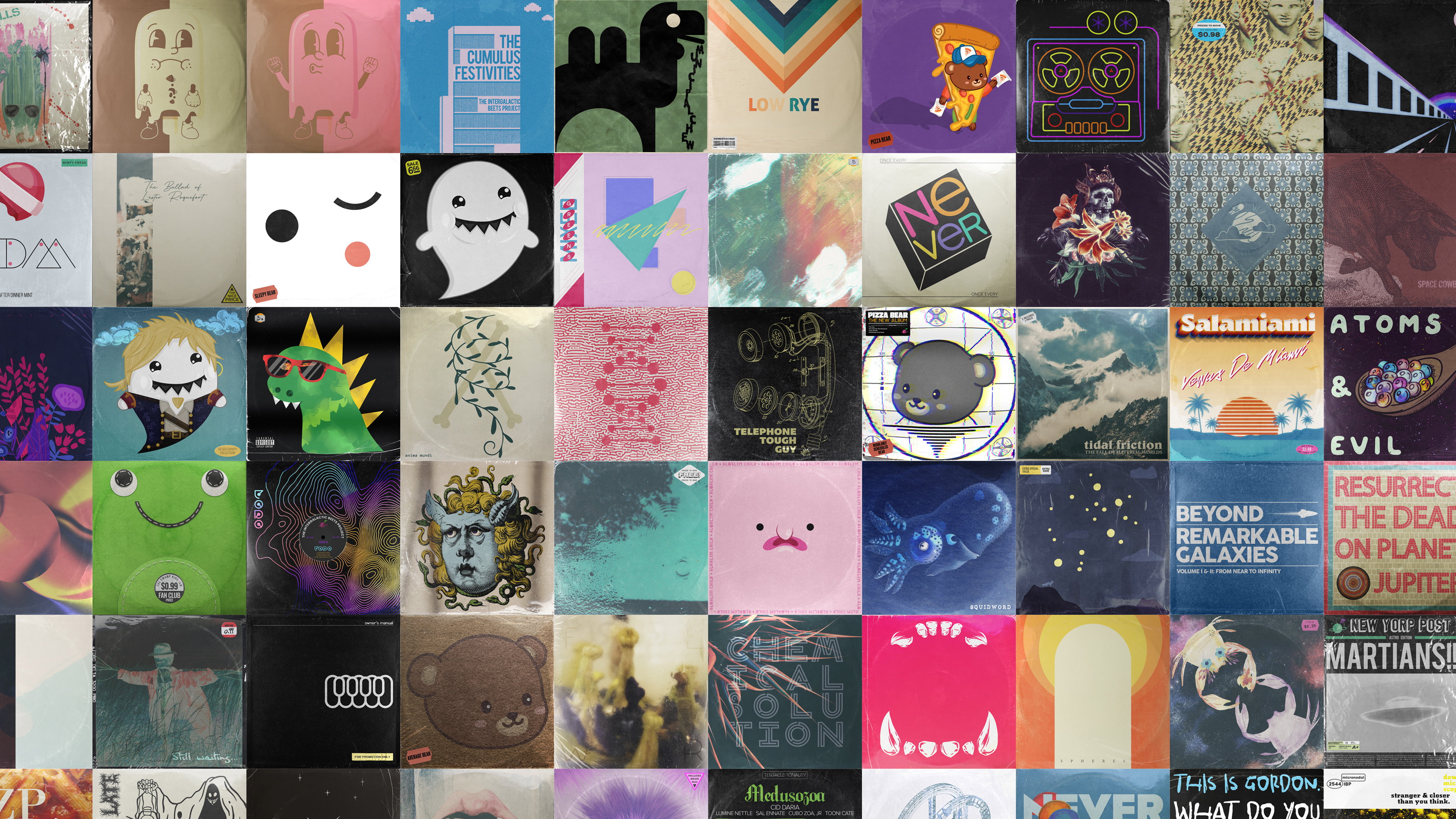 My name is Joey Rodriguez, and I am a musician and artist with over 20 years of experience in film, graphic design, and music production and recording. In March of 2021, I launched The Intergalactic Beets Project, blending my original songs with fictional artists from outer space to create an intergalactic "record label" dedicated to rescuing music from being banned by an evil autocrat. This project has ballooned to nearly 300 songs, from 200 fictional artists across 200 albums. For each album I have also created a unique backstory about its history, as well as an album cover to complete a discography of tasty and otherworldly beats.